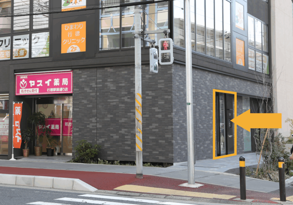 また当院の入り口は、建物右手奥になります。自動ドアを入り、エレベーターで2階へお越しください。